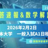 2026年2月4日実施の酪農学園大学・獣医学類・一般入試の数学の解答速報になります。
