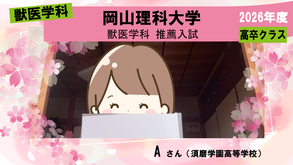 現役生のときにインターネットや入試会場で配っている予備校のチラシを見て獣医学科専門塾の存在を知りました。1浪目のときに入塾も検討しましたが、家から遠いことなどから近くの予備校に通うことにしましたが、2浪目のときにはお父さんが大阪にいて勧めてくれたこともあり、入塾することにしました。
